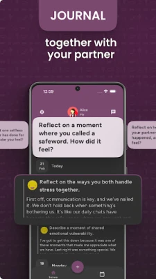 Main features: - Journal privately or together with your partner - Get unique journaling prompts and questions every day to inspire you to write - Set reminders to help you keep on track - Get notified when your partner writes an entry - Chat with your partner - Protect your app with a passcode - Customize your app with different color themes