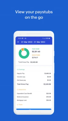 ★ Pay Stub Details: Get an overview of your pay stub along with the breakdown of your earnings and taxes.