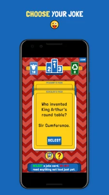 - Take The Stage: Players rotate as the jester, picking jokes from hilarious themed packs.