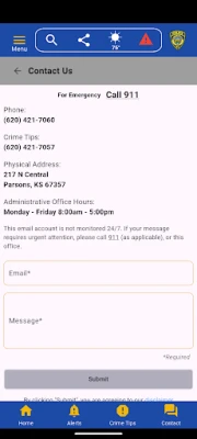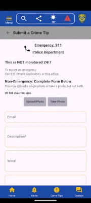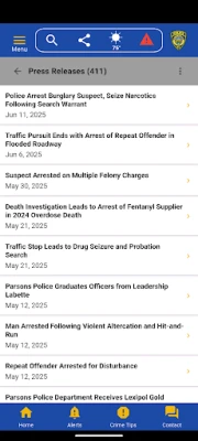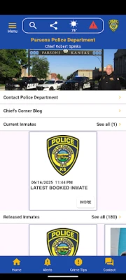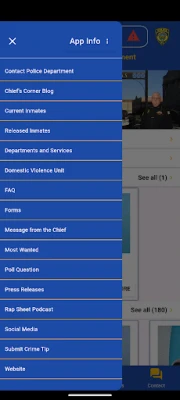 The app has public information for press releases, lockup roster, most wanted, special alerts, and FAQ's. Crime tips and contact us messages can be sent to the Police Department.